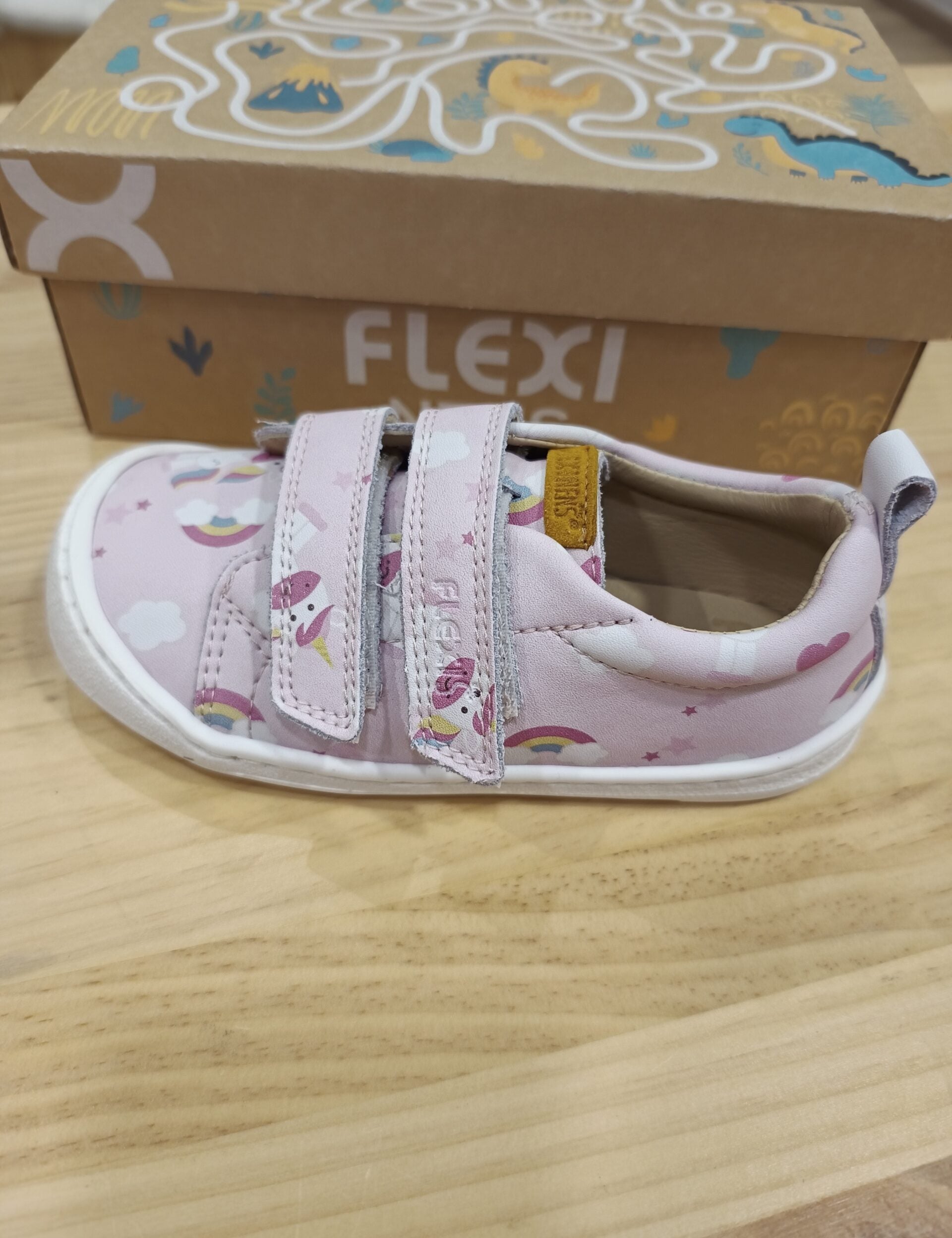 Zapatilla respetuosa infantil de piel estampado Unicornio