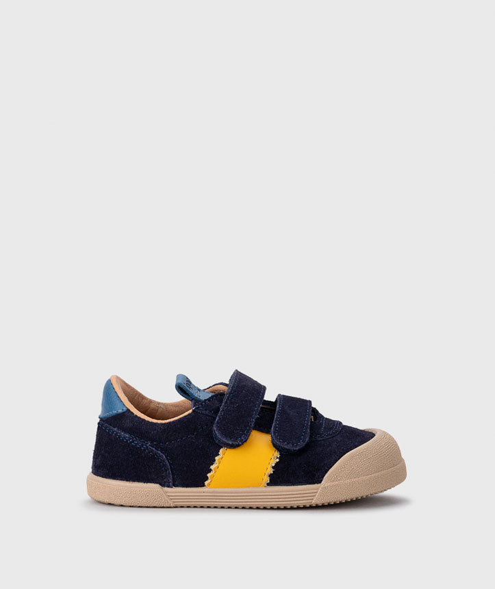 Deportivos de serraje de concepto barefoot wide, con la puntera más ancha, cero drop, flexible y blandito, plantilla extraíble y cierre adherente para mayor ajuste y autonomía.