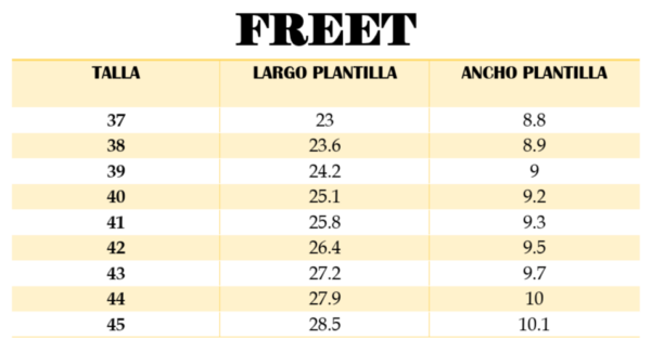 Altura: 9,5 mm con plantilla Ortholite; 6,5 mm sin plantilla, drop cero.